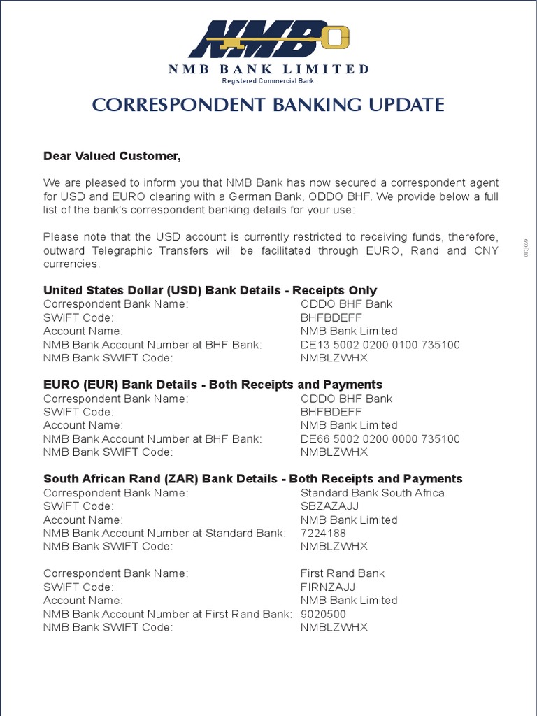 Check spelling or type a new query. We did not find results for: Maybe you would like to learn more about one of these? Communique to bank customers to inform change in correspondant bank.